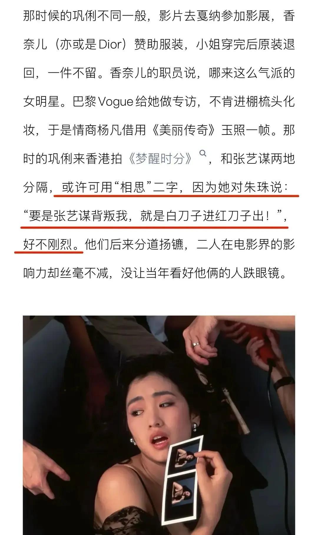 和“巩皇”纠缠的那八年,堪称华语影坛最浓烈的一把火。巩俐在银幕上霸气侧漏,在生活中更是烈性十足。香港导演杨凡曾爆料,巩俐对待异地恋的态度极其决绝:“白刀子进红刀子出”。